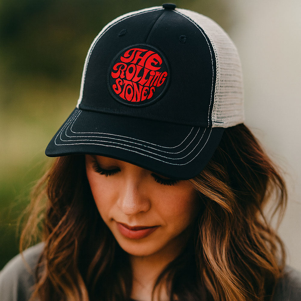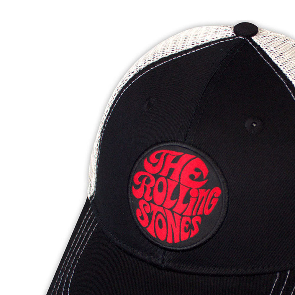 ローリング・ストーンズの象徴的な70年代ロゴ「Lips and Tongue(ベロ・マーク)」をフロントに刺繍した、ユニセックス仕様のメッシュバックキャップ。