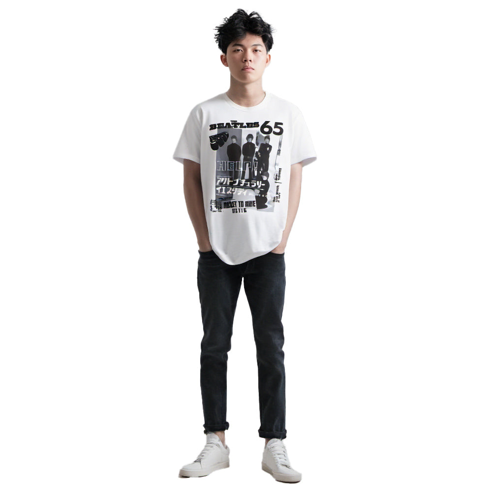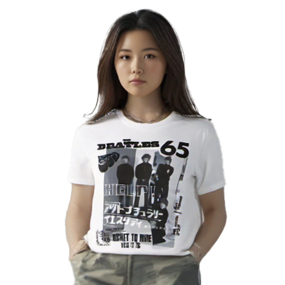 1965年のThe Beatlesを象徴するモチーフをフロントにあしらった、公式ライセンスのユニセックスTシャツ。