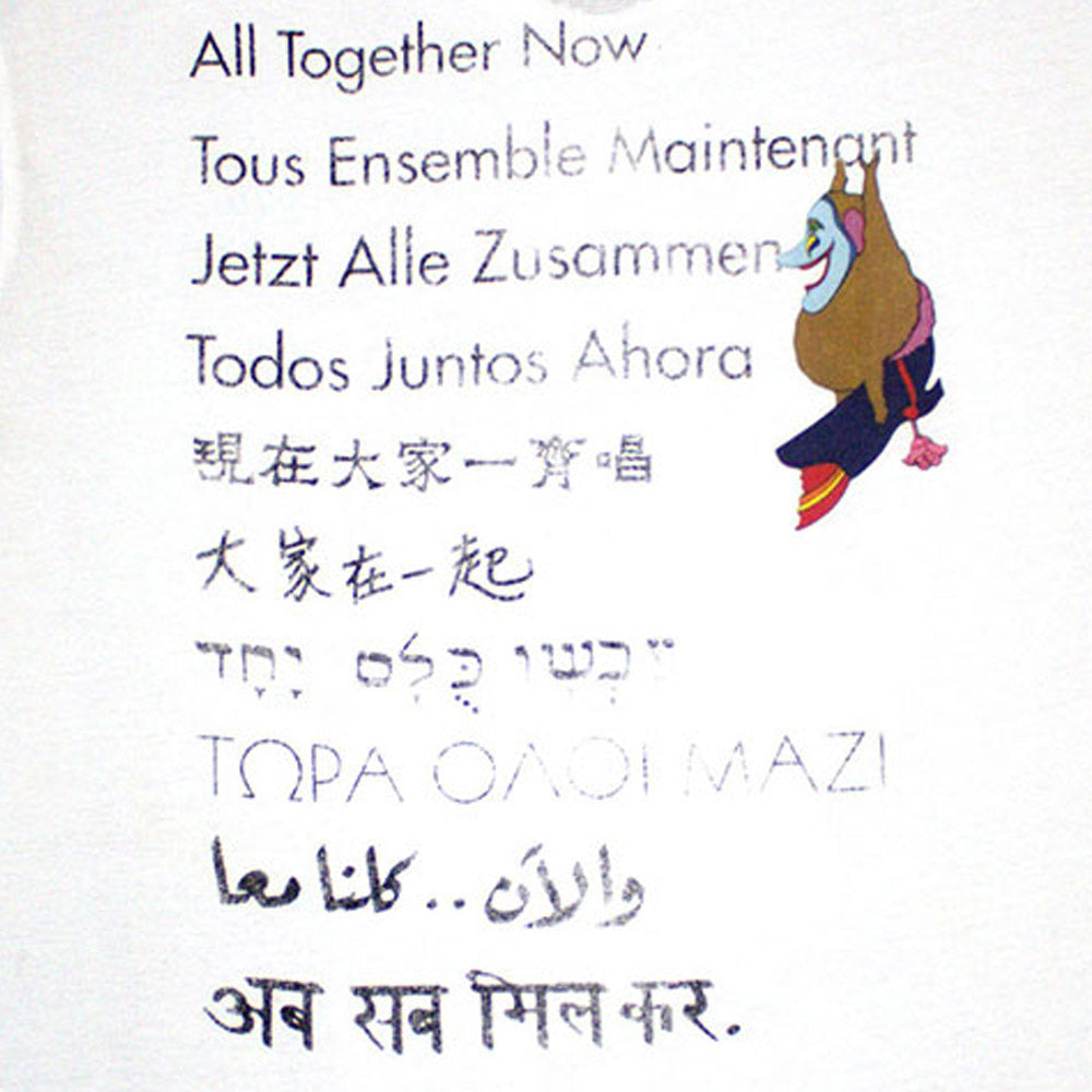 1968年のアニメ映画『イエロー・サブマリン』に登場するビートルズのメンバーたちを、印象的なコラージュスタイルで表現したユニセックスTシャツです。