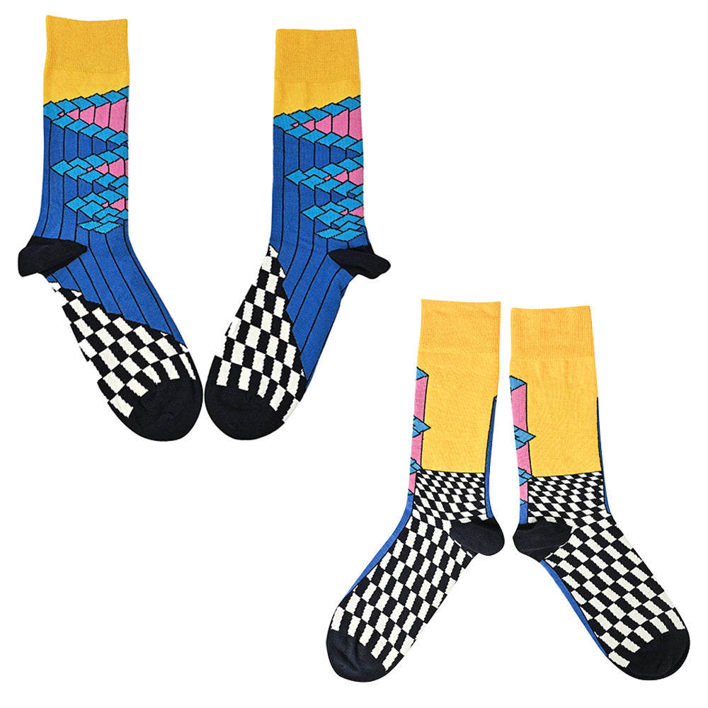 These colorful all-over cotton rich woven socks are sure to catch everyone's attention.