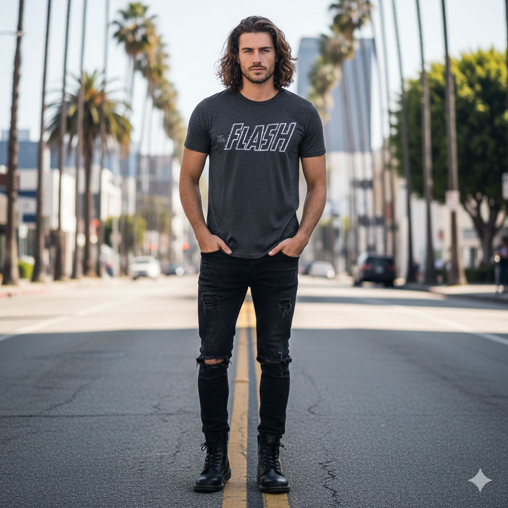 DC Comics superhero "The Flash" logo design T-shirt.