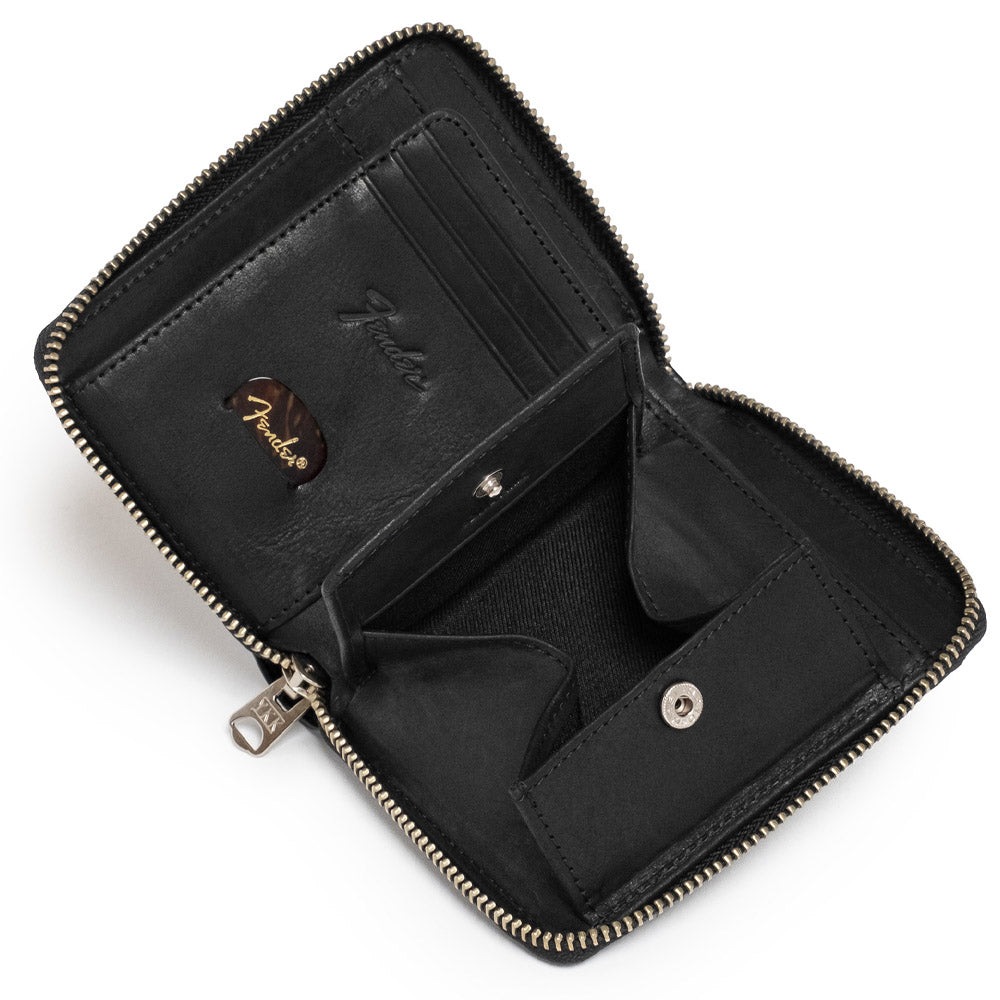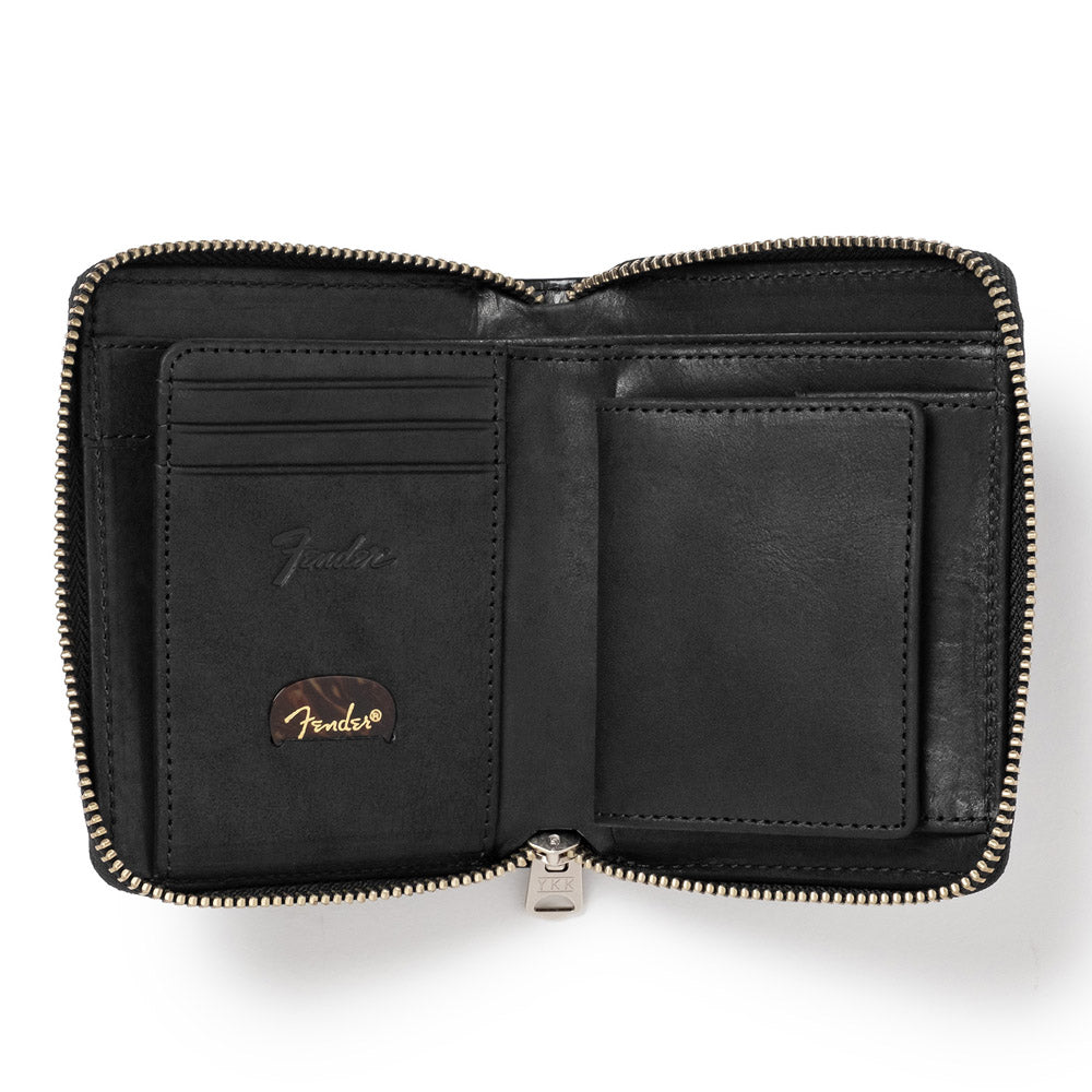 FENDER (80th Anniversary) - Bi-fold wallet with round zipper / Black / Guitar pick and wallet cord included / Wallet