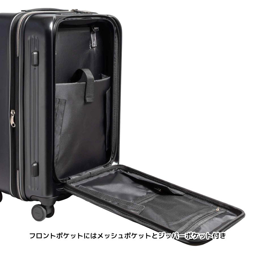 The front-opening design allows you to take items in and out of the front pocket while the carry-on case is standing upright.