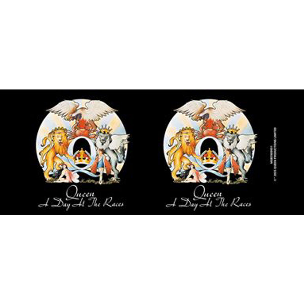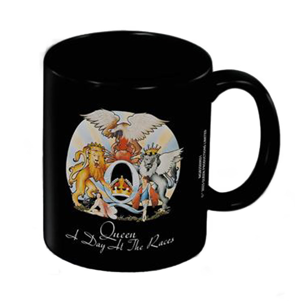 伝説のロックバンドQUEENのアルバム"A Day at the Races"のアートワークをあしらった11オンスのブラックマグカップです。