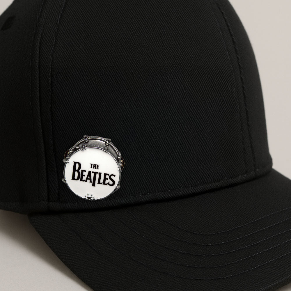 リンゴ・スターが使用していたバスドラムの"Drop T"ロゴをモチーフにしたデザインで、バンドのアイコニックなビジュアルをコンパクトに再現しています。