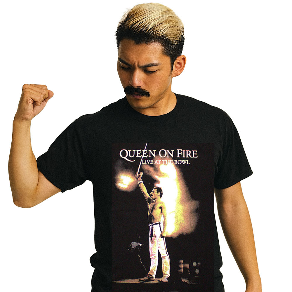 伝説のロックバンドQueenの名ライブ「Live At The Bowl」をモチーフにした公式Tシャツ。