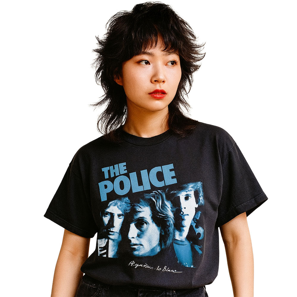 ニューウェーブ×レゲエロックの先駆者、The Policeの名盤『Reggatta de Blanc』のアートワークを再現した公式ライセンスTシャツ。