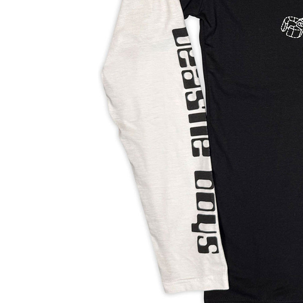ブラックボディにホワイトの袖を重ねた、ストリート感あふれるレイヤード仕様。