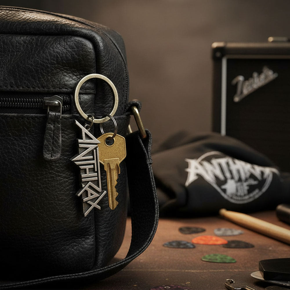スラッシュメタルの重鎮ANTHRAX(アンスラックス)のバンドロゴを立体的にデザインした、公式ライセンスのメタルキーホルダーです。