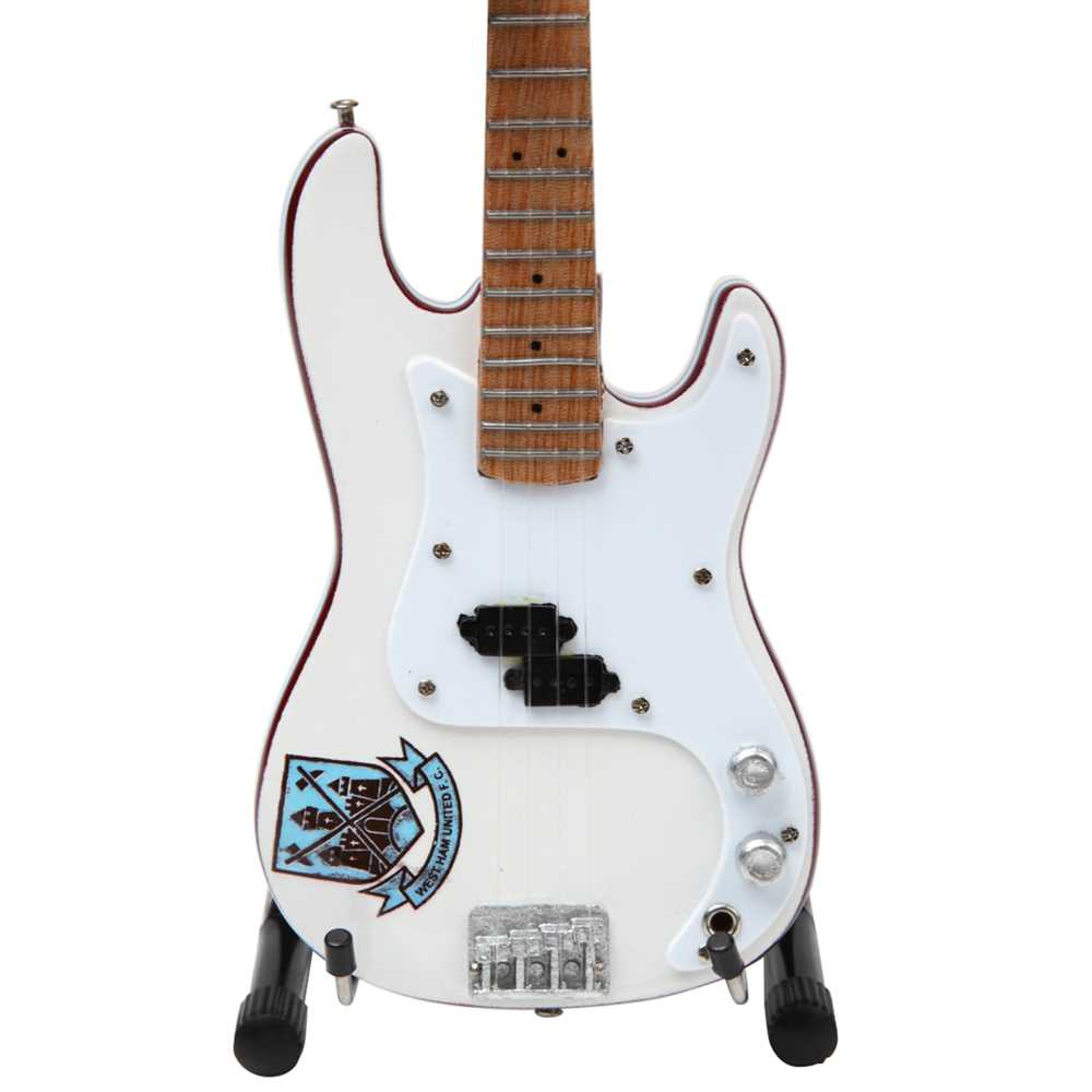 アイアン・メイデンのベーシスト スティーヴ・ハリス・モデルのミニチュア・ベース 。