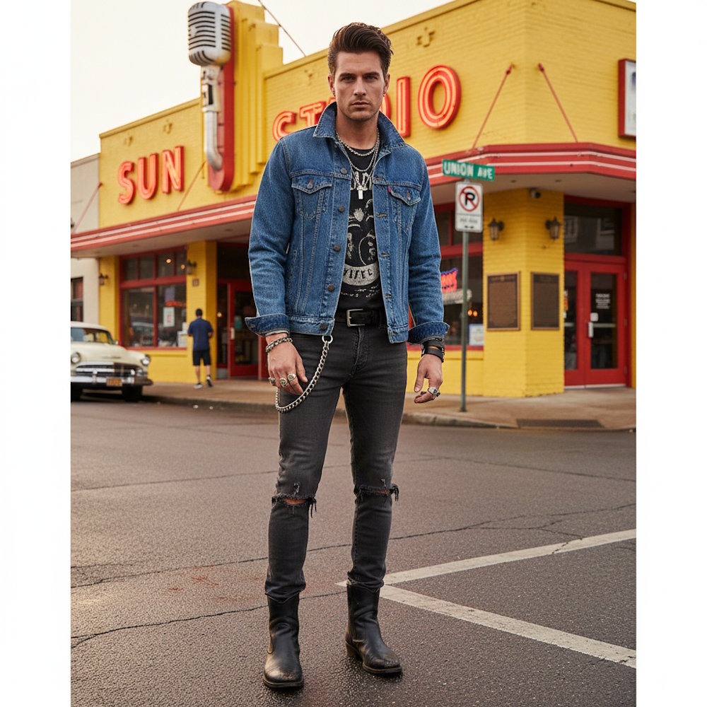 1950年1月3日のテネシー州メンフィス、ユニオン・アヴェニュー703にオープンした数々の世界的ミュージシャンを輩出した伝説のレコーディングスタジオの公式ジーンズ・ジャケット / Memphis Sun Studio 直輸入