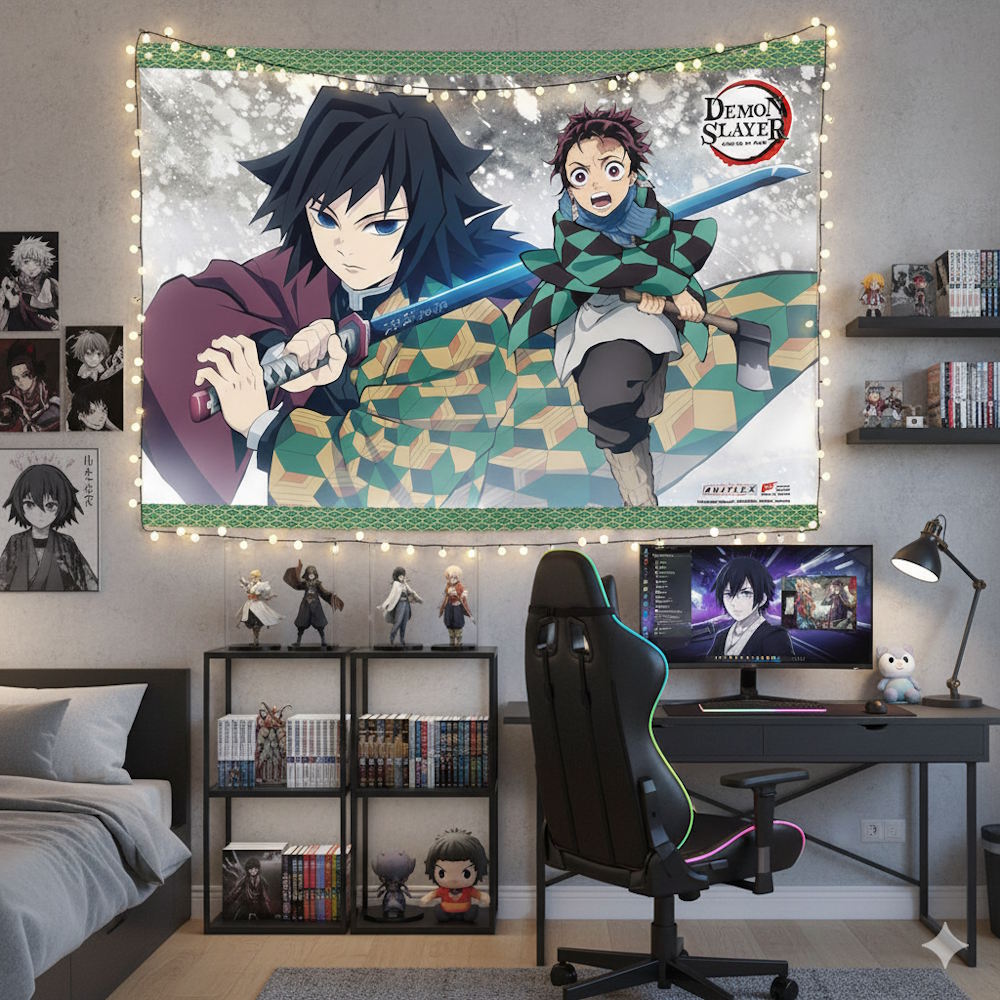竈門 炭治郎と冨岡 義勇をフィーチャーした公式タペストリー〈海外版〉。