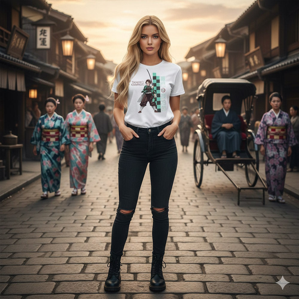 主人公 竈門 炭治郎 をデザインした公式レディースTシャツ〈海外版〉。