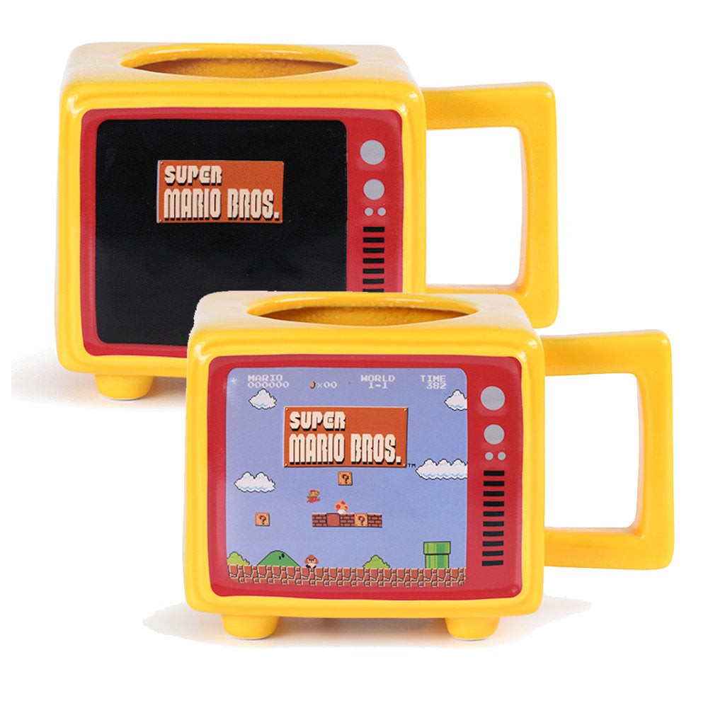 温度によってデザインが変わる、マグカップにコーヒーをTV画面のマグカップにSUPER MARIO BROS.が浮かび上がってきます。