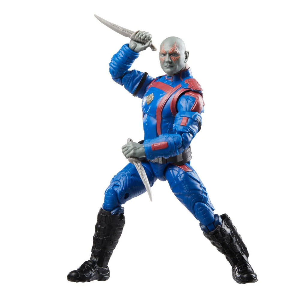 この6インチスケールのマーベル・レジェンド・フィギュアは、マーベル・スタジオの『ガーディアンズ・オブ・ギャラクシー Vol.3』に登場するドラックスのキャラクターを再現しており、プレミアムなディテール、複数の可動ポイント、映画にちなんだアクセサリー3点(ナイフアクセサリー2点を含む)が特徴です。