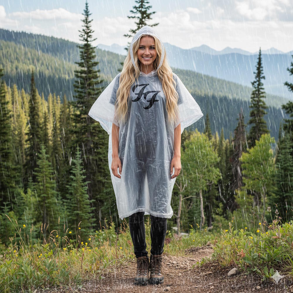 “Black FF”ロゴデザインのレインポンチョ。