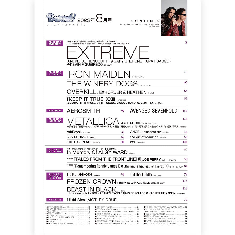 ※15年ぶりにリリースされたニュー・アルバム「SIX」を引っ提げて9月に来日を果たす人気バンドEXTREMEのメンバー全員の個別独占インタビューを大フィーチュア!