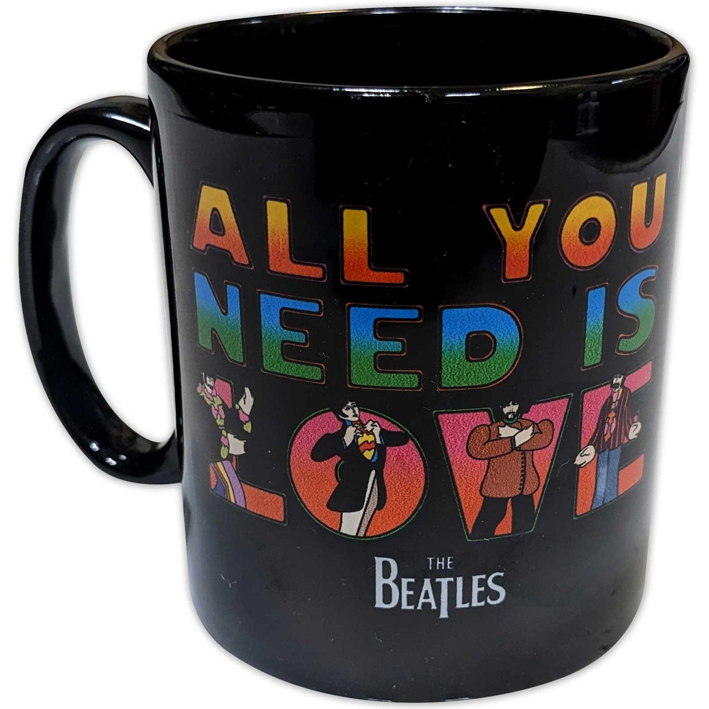 全面にプリントされた「Yellow Submarine All You Need Is Love」デザインモチーフが特徴の高品質セラミック製マグカップ。