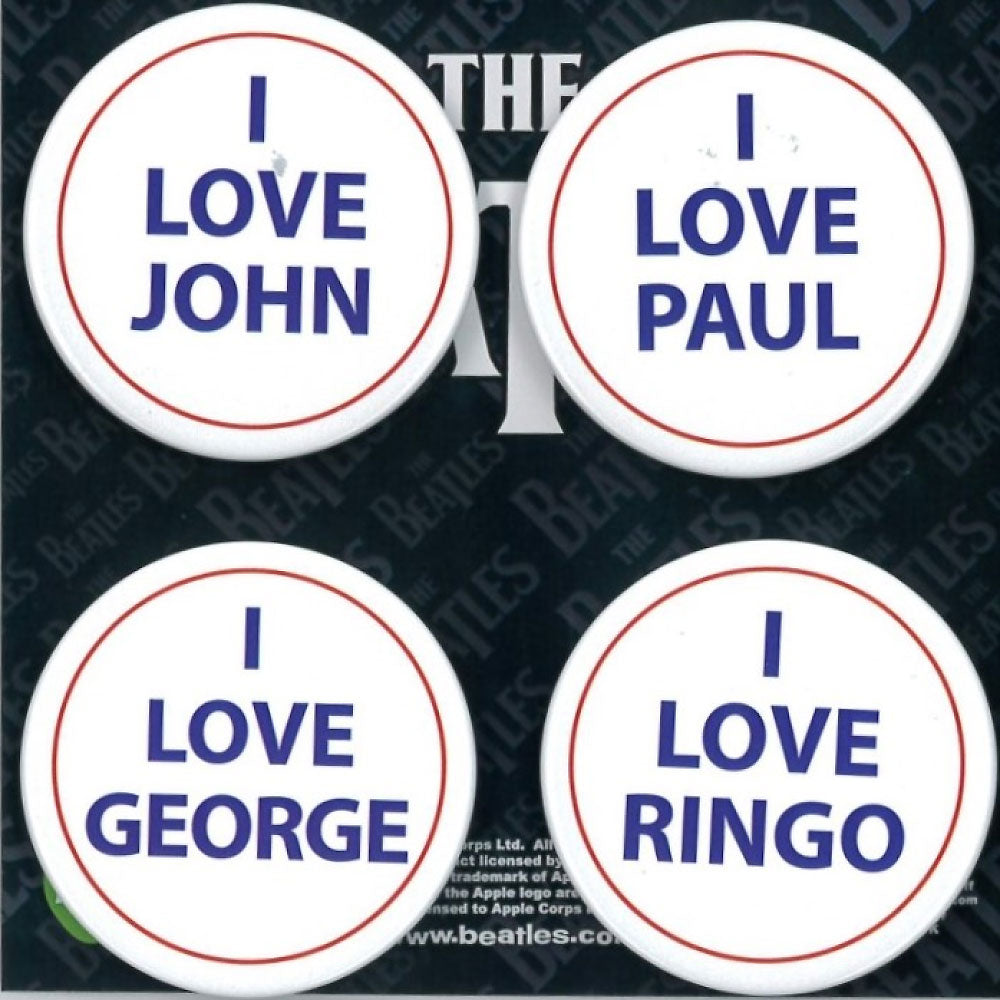 THE BEATLES ビートルズ (結成 65周年 ) - I Love / 4個セット / バッジ