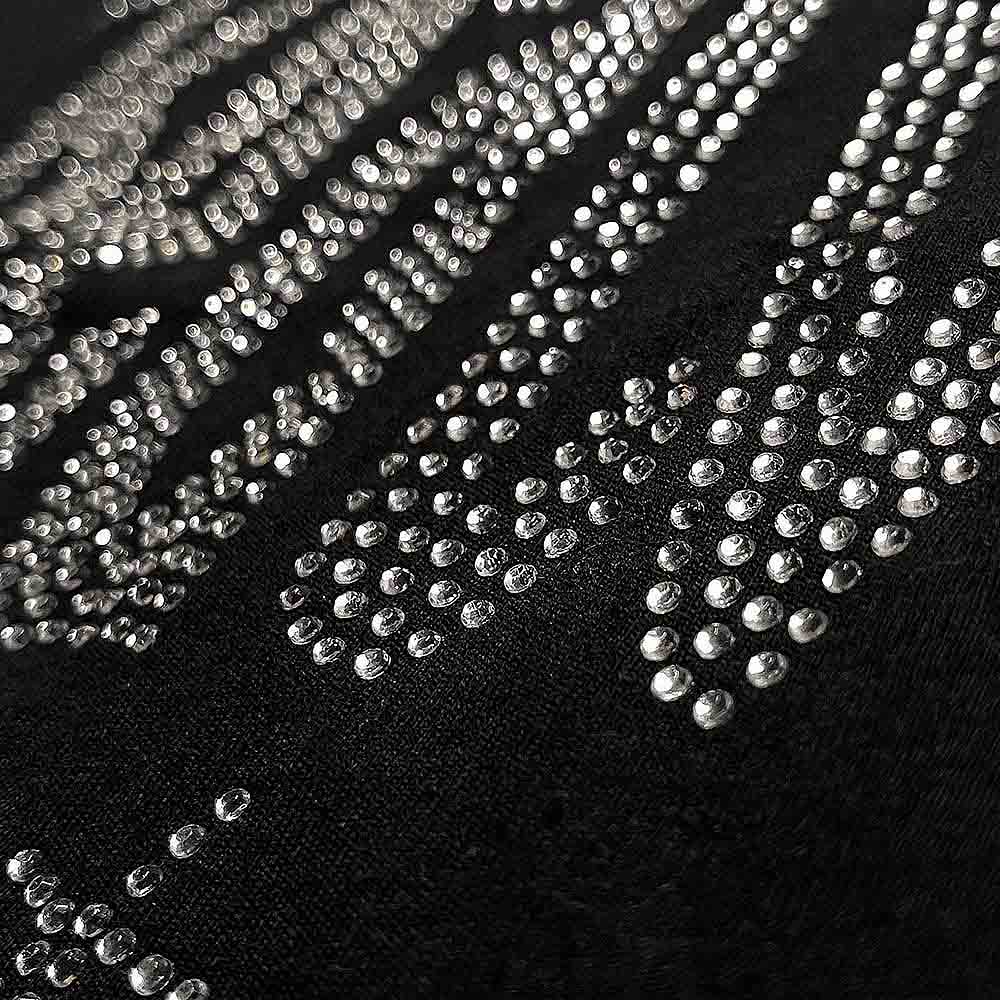 フロントに施された贅沢な質感や輝きを加えるライトストーン装飾が人目を引きます。