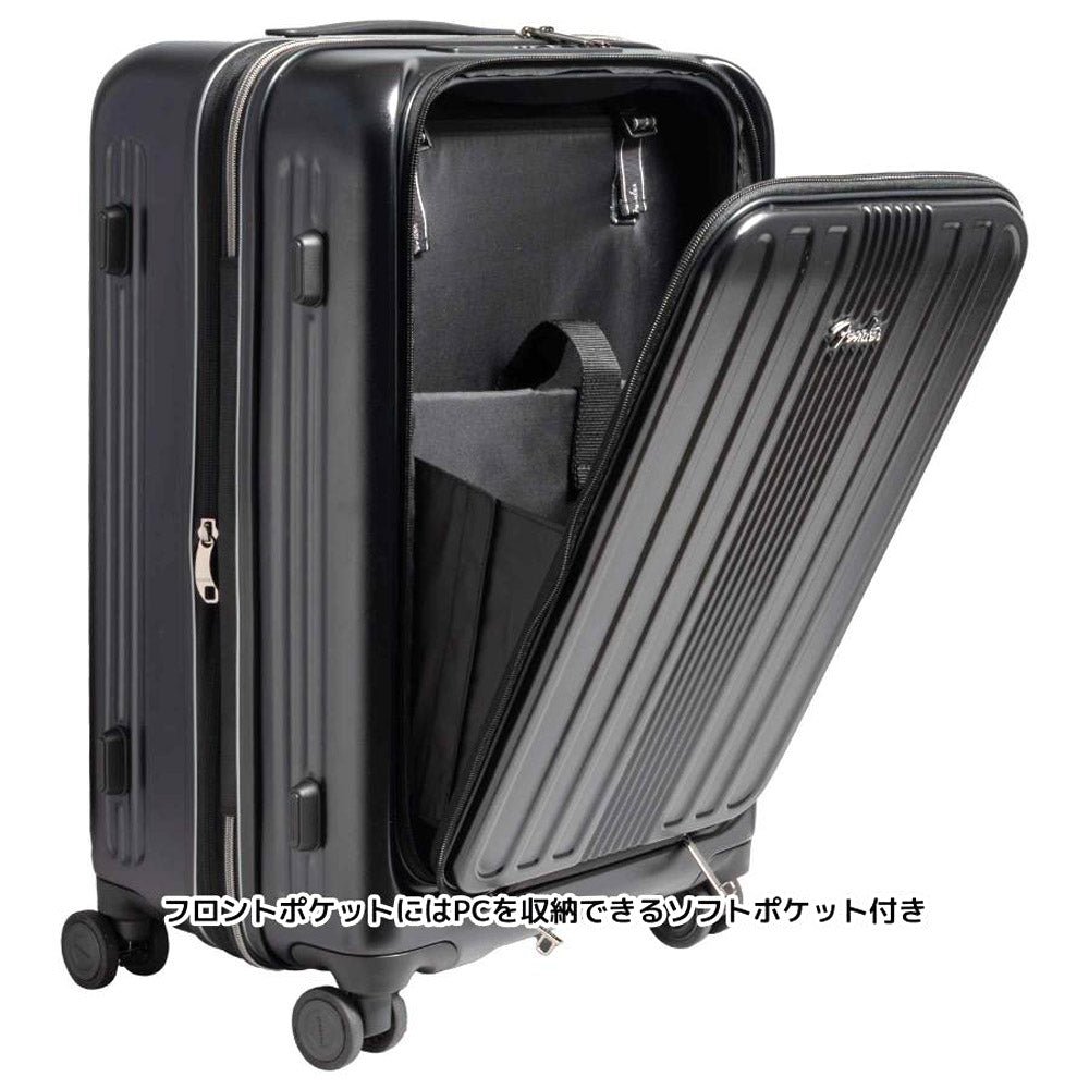 キャリーケースを立てたまま、前面のポケットから荷物の出し入れが可能なフロントオープン仕様。