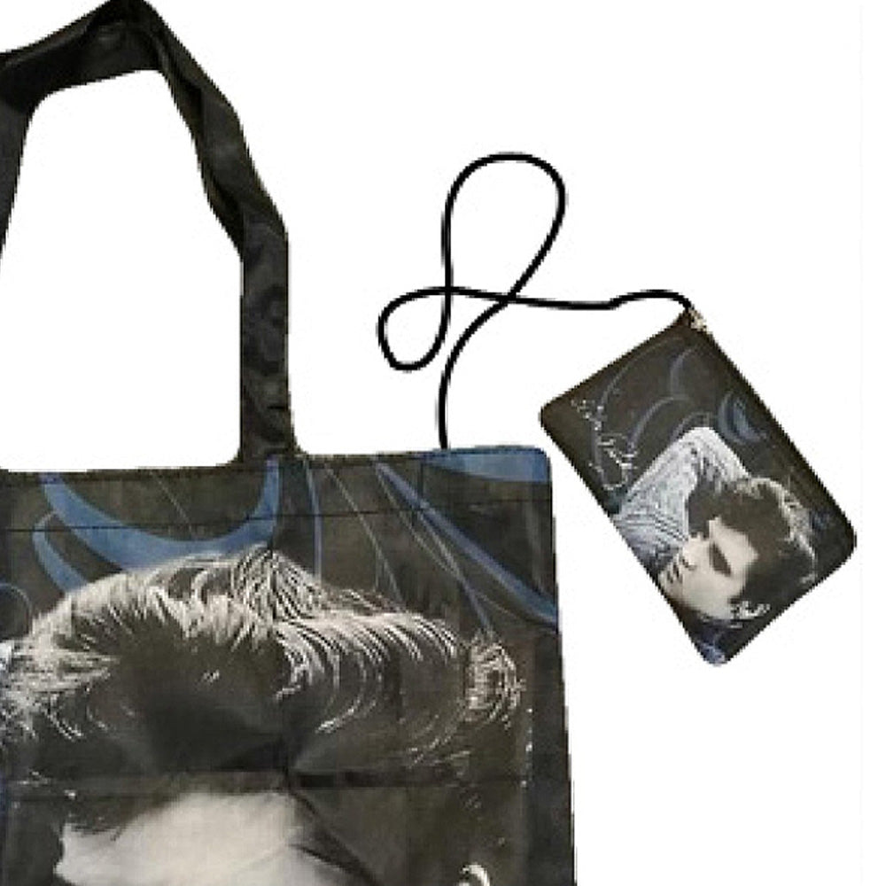 エルヴィス・プレスリーの爽やかなブルーセーター姿が大胆にデザインされた、再利用可能なショッピングバッグです。