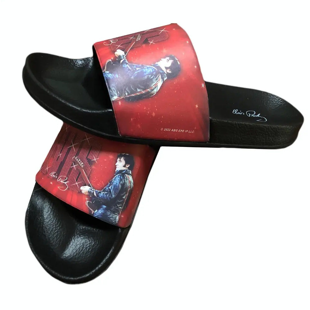 1968年の伝説的な"カムバック・スペシャル"をモチーフにした、エルヴィス・プレスリー公式ライセンスのサンダル。