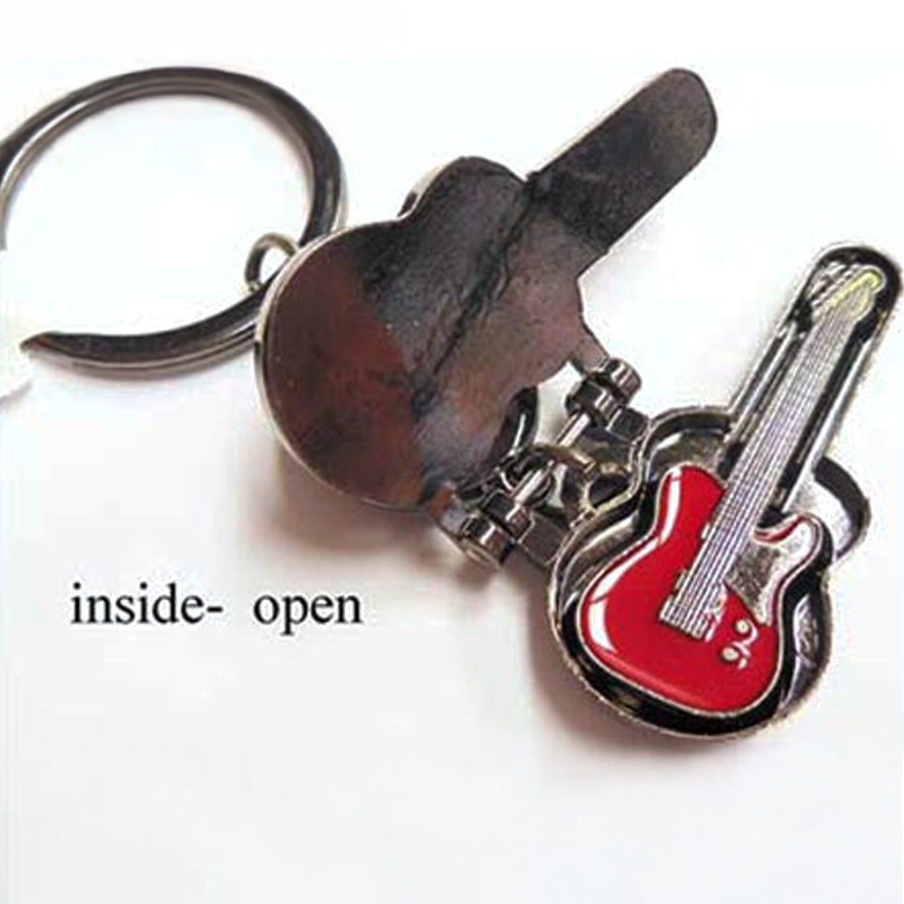 ケースを開くと、赤いギターのグラフィックが現れる遊び心あるデザインです。