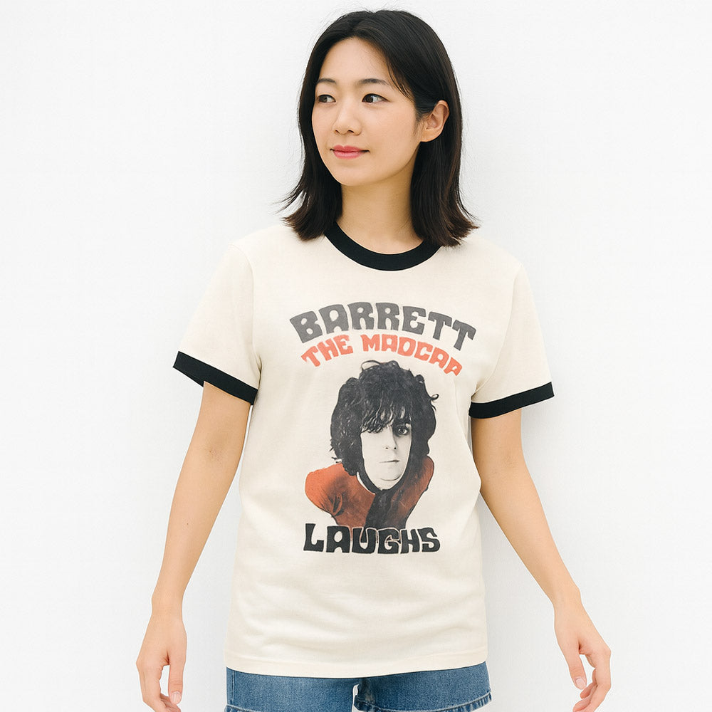 音楽史に残る伝説的アーティスト、Syd Barrettのソロアルバム『The Madcap Laughs』をモチーフにしたヴィンテージスタイルのリンガーTシャツです。