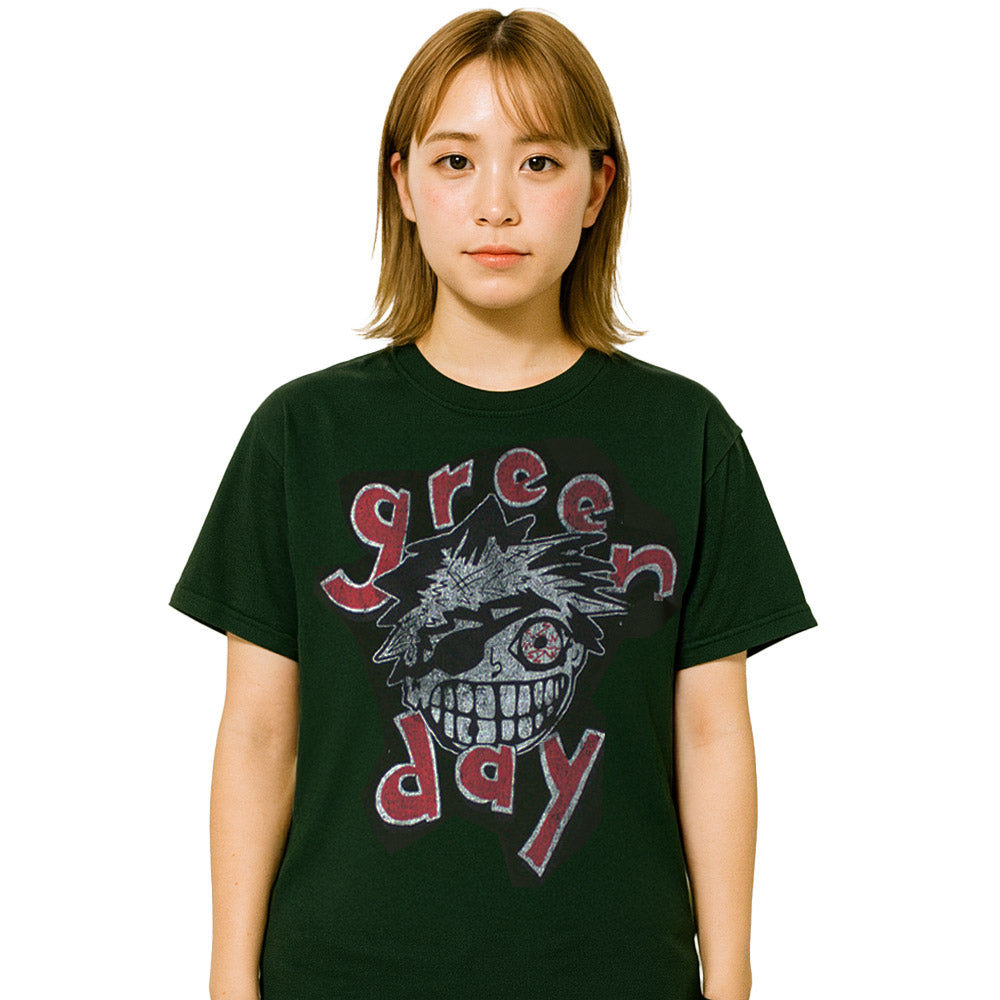 パンクロックの象徴、Green Dayのアートワークを大胆にあしらったユニセックスTシャツ。