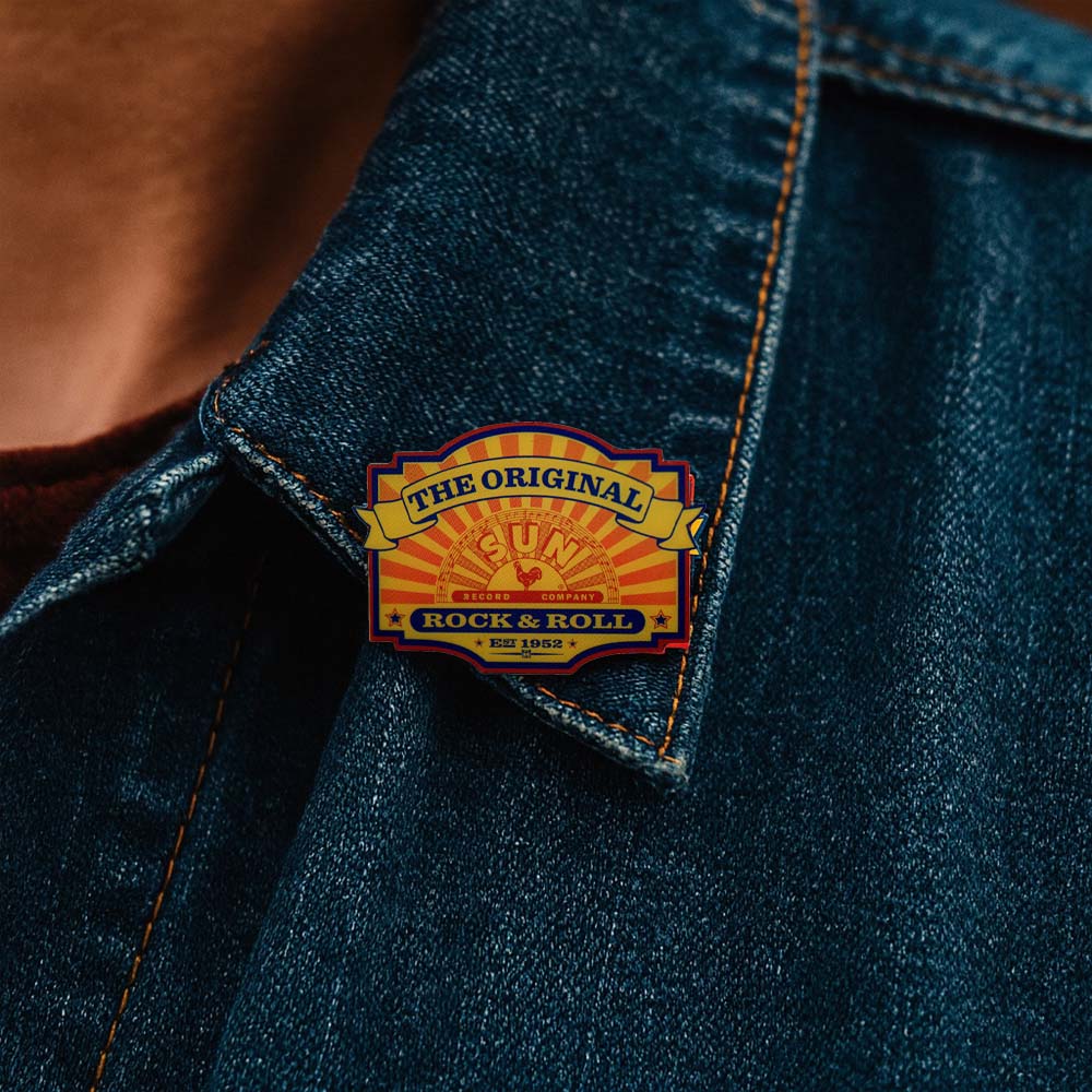 ロックンロールの原点を象徴する「Sun Records」のロゴをあしらった、Elvis Presleyファン必携のピンバッジ。
