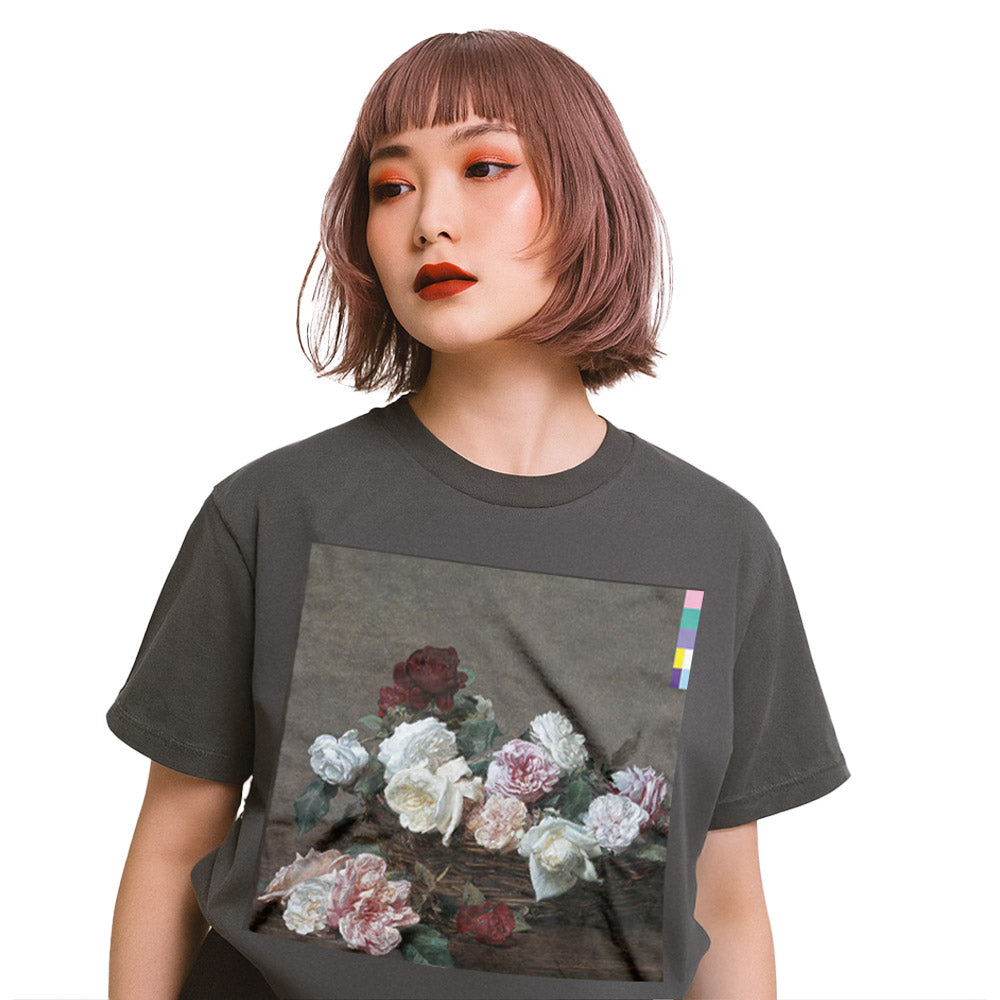 80年代UKポストパンクの象徴、New Orderの名盤『Power, Corruption & Lies』のアートワークを大胆にプリントした一枚。