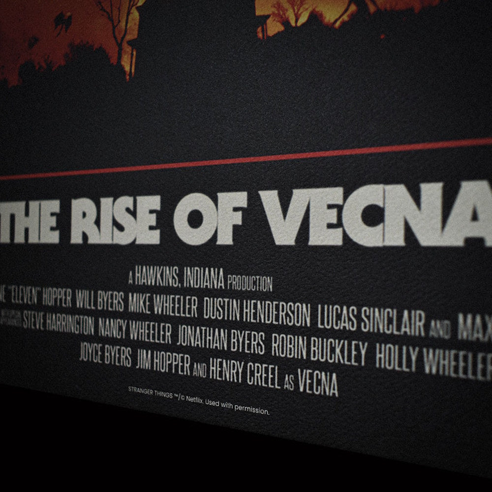 この限定版アートプリントは、80年代の映画ポスター風にデザインされた「The Rise of Vecna(ヴェクナの誕生)」をテーマに制作。