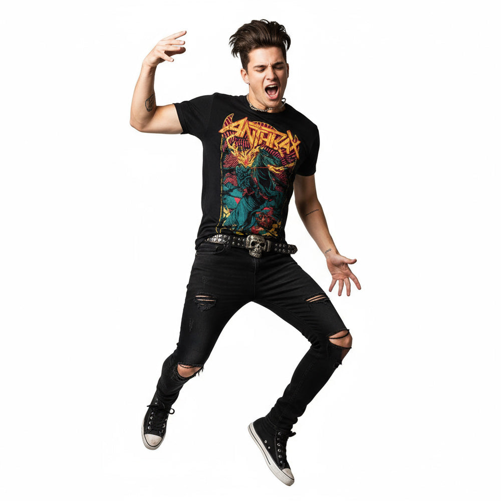 スラッシュメタル四天王として名高いANTHRAX(アンスラックス)のアートワークを、迫力のあるグラフィックでフロント全面に落とし込んだ一枚です。