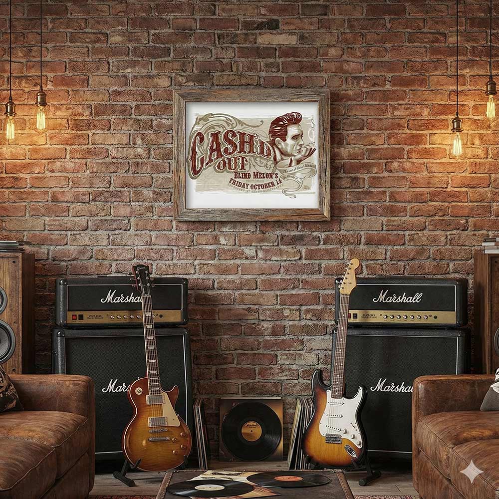 クラシックなタイポグラフィと、JOHNNY CASHの強烈な存在感を放つ横顔イラストが印象的なデザイン。
