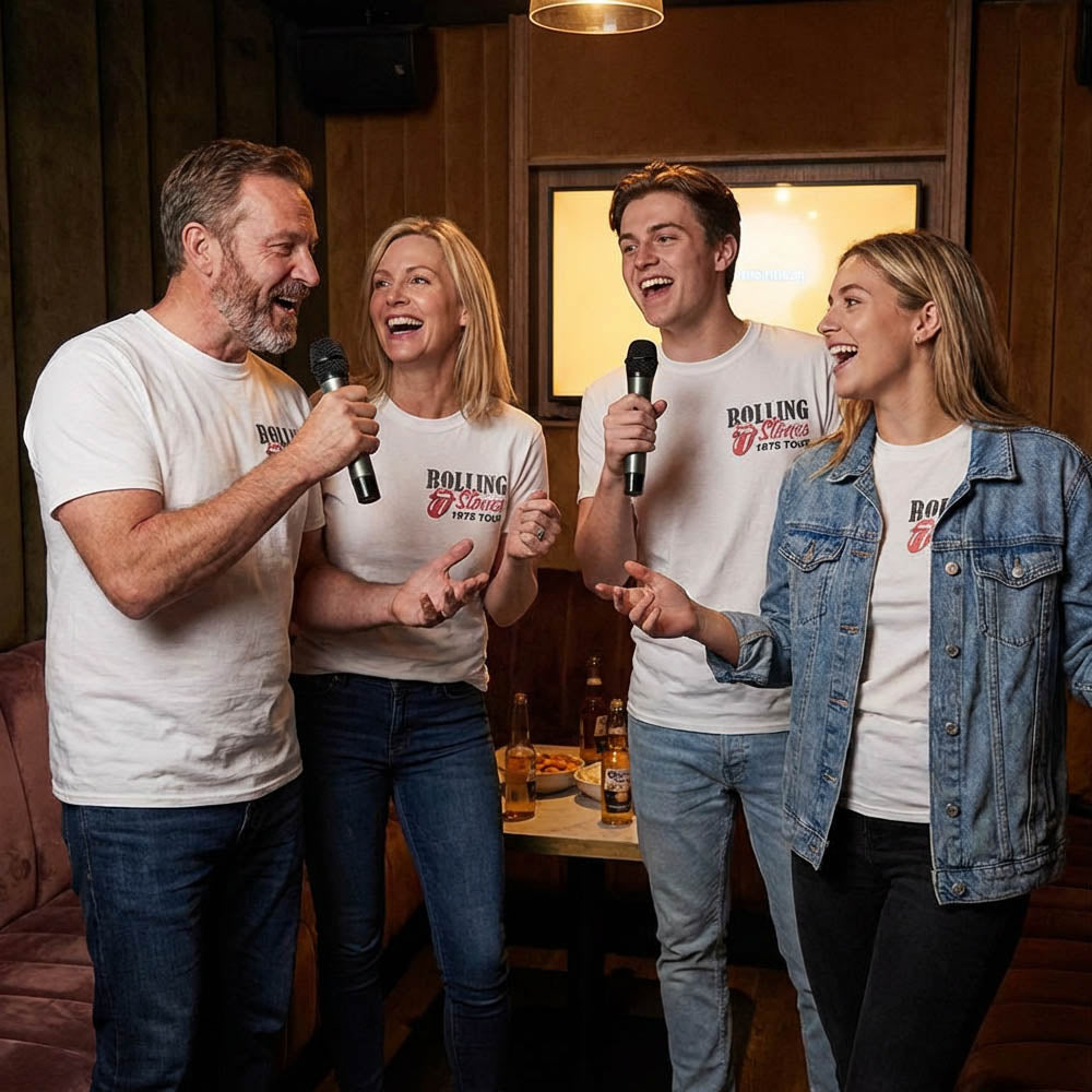 ホワイトボディに映えるレッドとブラックの配色が、1970年代ストーンズの熱気とエネルギーを鮮やかに表現。