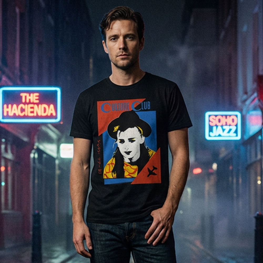 単なるツアーTシャツにとどまらず、80sカルチャー、アート、ファッションを横断する CULTURE CLUBの世界観を現代のストリートスタイルに自然に落とし込めるデザイン。