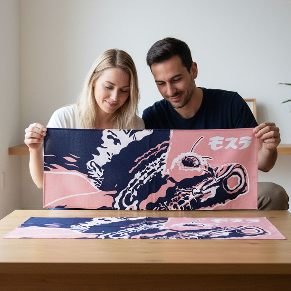 GODZILLA ゴジラ - Godzilla & Japanese traditional crafts / モスラ(春) / 注染二度染め手ぬぐい / 紅梅色 / キッチン用品