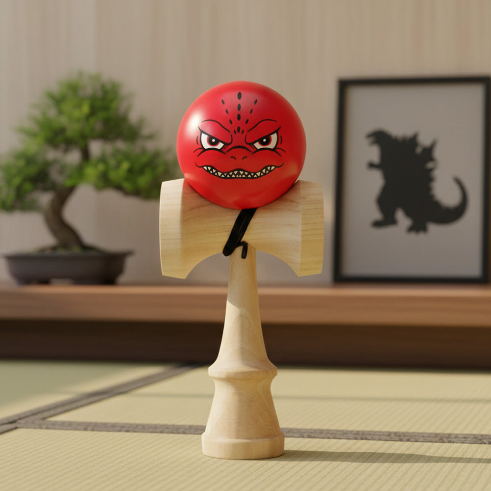 大会にも出場できる本格仕様のけん玉に、鋭い眼差しと牙をむいたゴジラの表情を大胆に落とし込んだ、迫力あふれるコラボレーションモデルです。