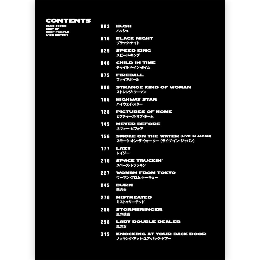 「ブラック・ナイト」「スモーク・オン・ザ・ウォーター」「紫の炎」をはじめ、黄金期を象徴する“鉄板曲”のみを厳選した全18曲を収載。